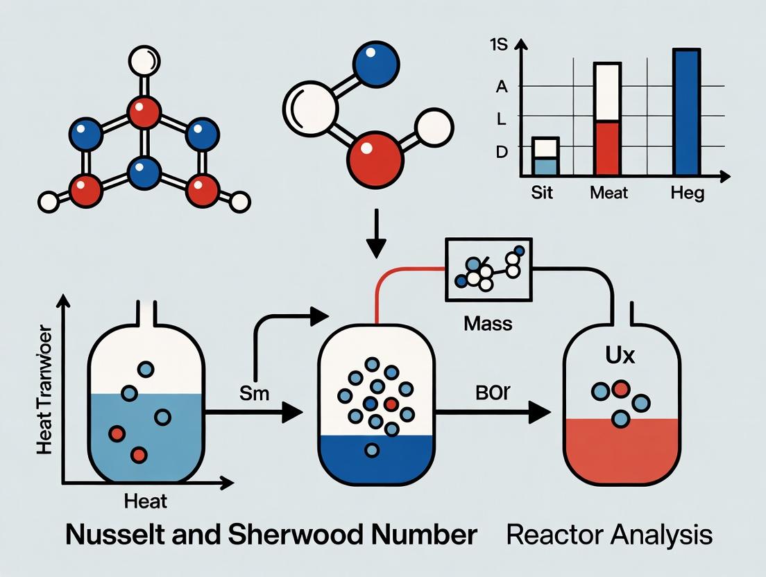 Within the scope of reactor design research—encompassing chemical, biochemical, and pharmaceutical applications—the Nusselt and Sherwood numbers are pivotal dimensionless parameters for analyzing and scaling transport phenomena. This foundational knowledge is critical for the design of efficient reactors, where precise control over heat and mass transfer directly impacts yield, selectivity, and product quality in processes like drug synthesis and fermentation.