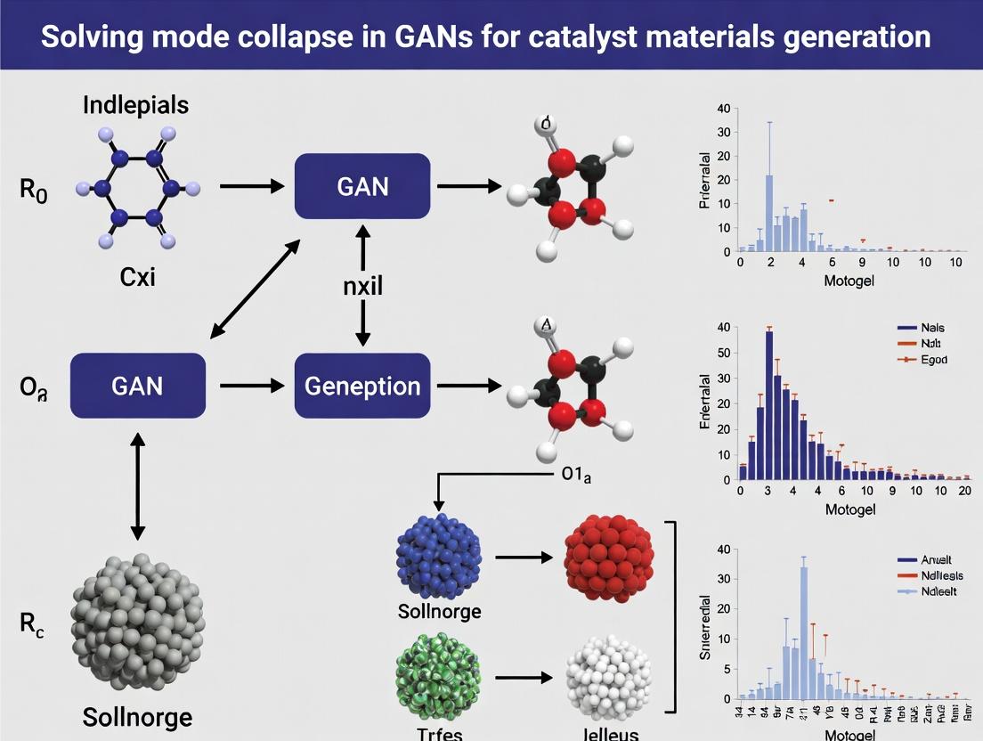 This article provides a comprehensive guide for researchers and material scientists on solving mode collapse in Generative Adversarial Networks (GANs) for catalyst generation.