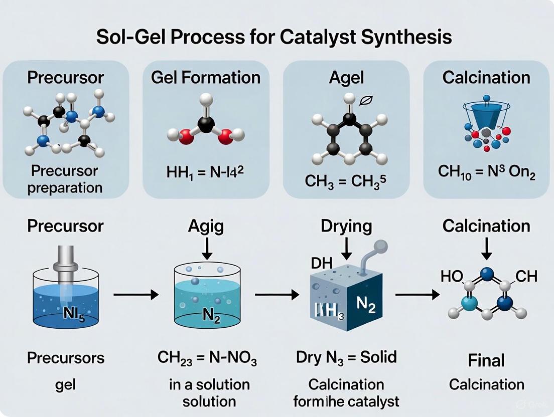 The sol-gel process represents a cornerstone of modern materials science, enabling the synthesis of advanced catalytic frameworks with tailored properties for applications ranging from heterogeneous catalysis to drug development. This transformative technology facilitates the transition of molecular precursors into integrated solid networks through controlled hydrolysis and condensation reactions, operating at low temperatures that preserve structural integrity and functionality. The strategic selection of precursors—primarily metal alkoxides and metal salts—dictates the architecture, porosity, and surface chemistry of the resulting metal oxides, thereby governing their catalytic performance. Within the broader context of sol-gel research for catalyst synthesis, understanding the chemical behavior and application protocols of these precursors is paramount for designing materials with precision. This document provides a comprehensive overview of the essential precursors used in sol-gel chemistry, detailing their reaction mechanisms, comparative advantages, and practical synthesis protocols to equip researchers with the foundational knowledge for innovative catalyst development.
