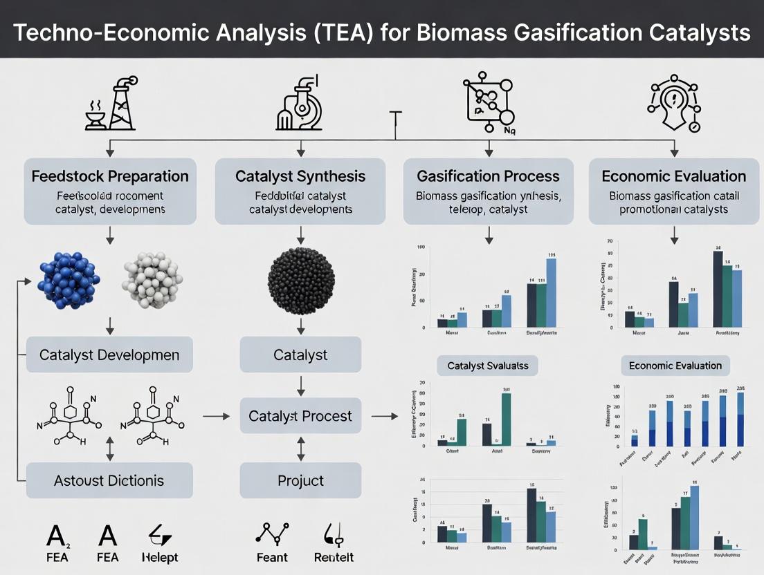 The economic assessment translates these parameters into capital expenditures (CAPEX), operating expenditures (OPEX), and revenue. Catalyst performance directly affects multiple cost centers: its purchase cost (CAPEX), its activity and stability (affecting reactor size and biomass throughput), and its resistance to poisoning (affecting replacement frequency and OPEX).